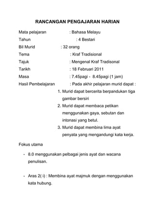 Semoga bermanfaat kepada guru. Pelbagai cara boleh dicuba untuk mengemudi sesi PdPR. RANCANGAN PENGAJARAN HARIAN RPH BAHASA MELAYU TAHUN 4 Tarikh.